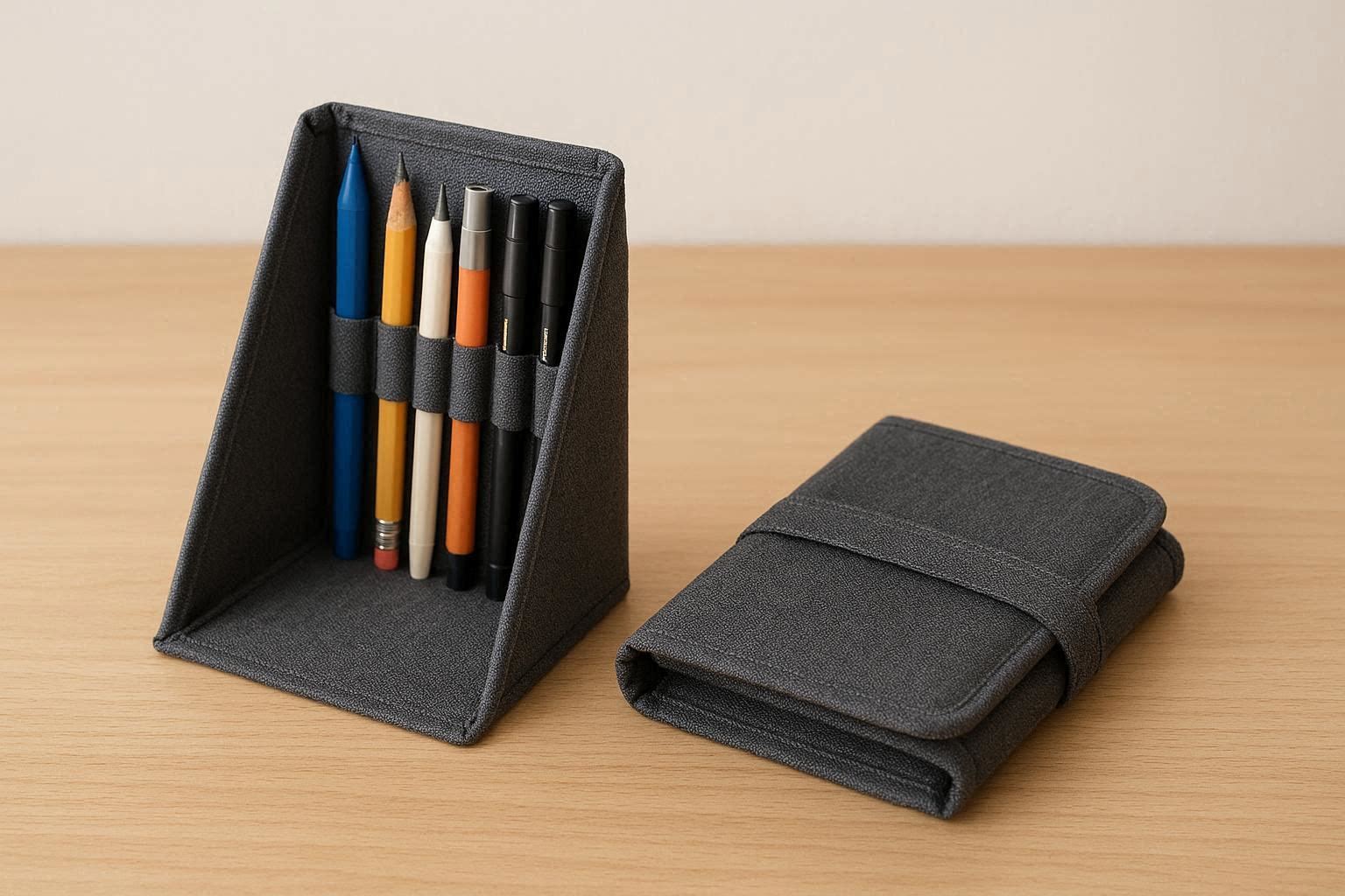 Fabric Pen Holder with Foldable Design for Travel and Desk Use