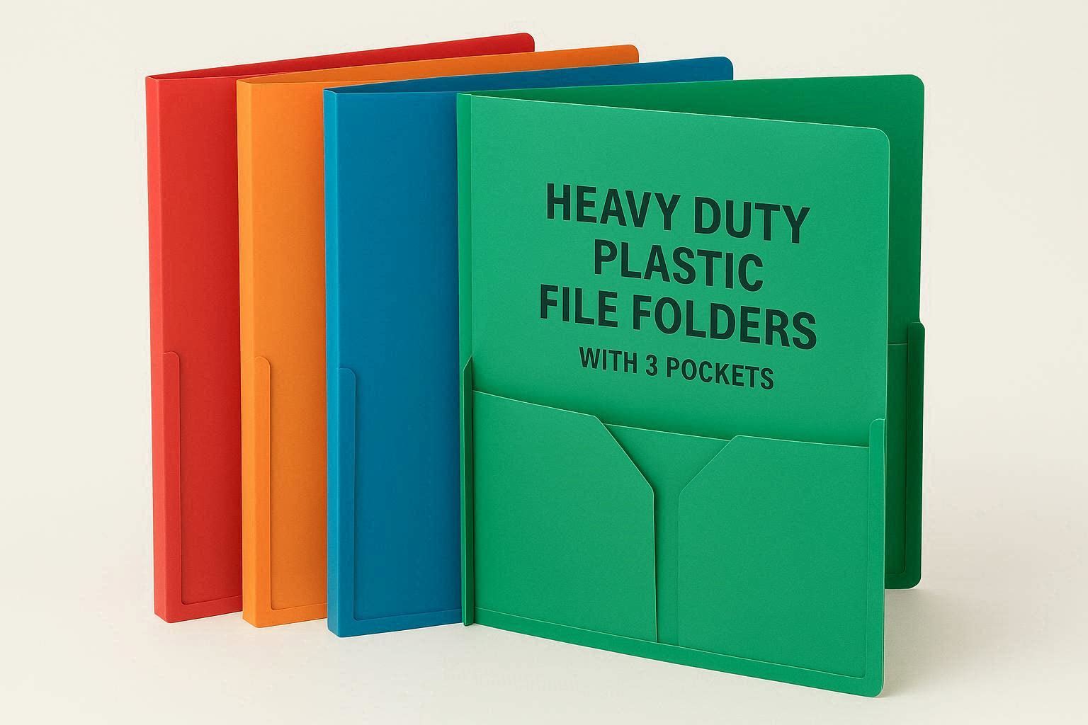 Heavy Duty Plastic File Folders with 3 Pockets for Office and School Use
