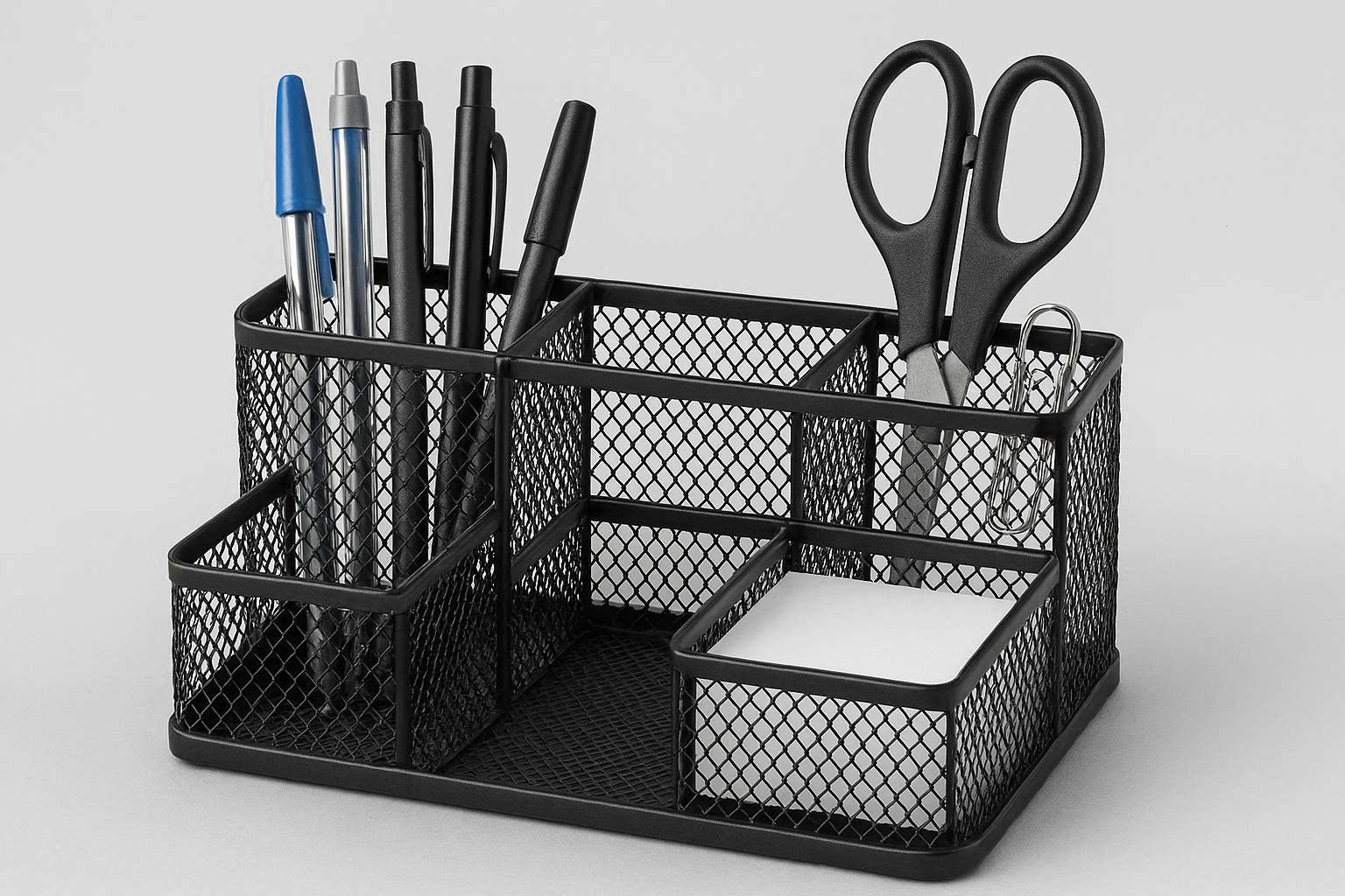 Mesh Desktop Storage Box with 5 Compartments for Pen and Stationery