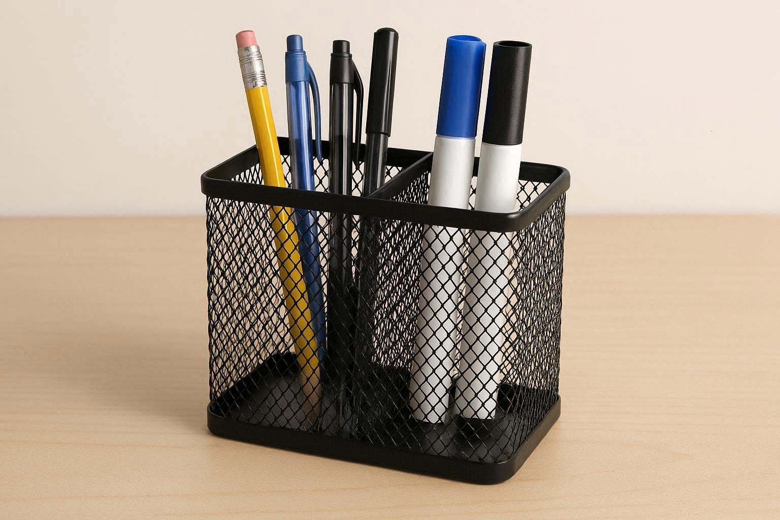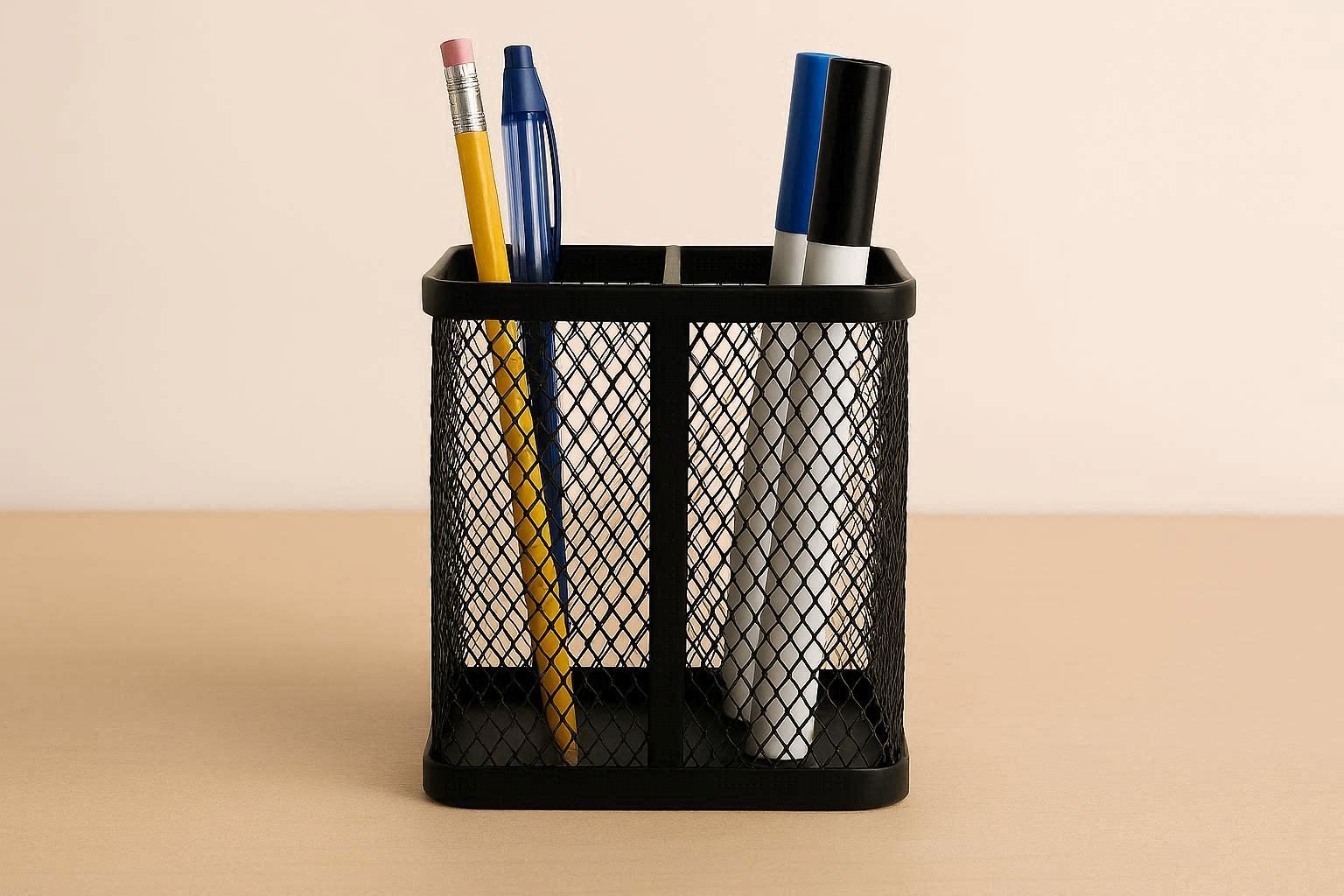 Mesh Pen Holder with 2 Compartments for Office and Classroom Use